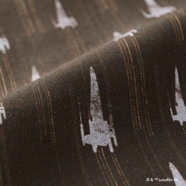 反乱同盟軍が使用する速度と火力のバランスに秀でた多目的スターファイター。大胆な描写がどこか和のテイストを感じさせる深みのある一着、宇宙と伝統が響き合い新たな美を生み出したデザイン。