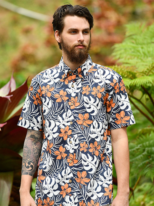 | メンズアロハシャツ(ボタンダウン)/Lovely Hibiscus 16,000円 (税抜) | メンズアロハシャツ半袖/Dancing Monstera 18,000 (税抜) |